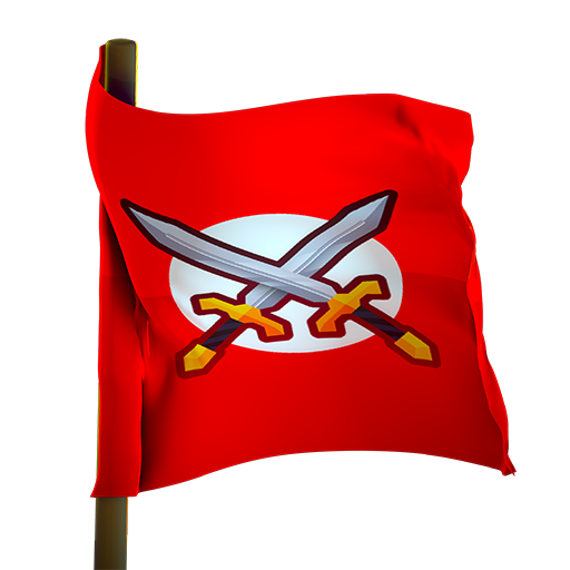 The Damage Flag is a red flag with a long grey pole. The flag has a small white circle, with two swords crossing each other in front of the circle.