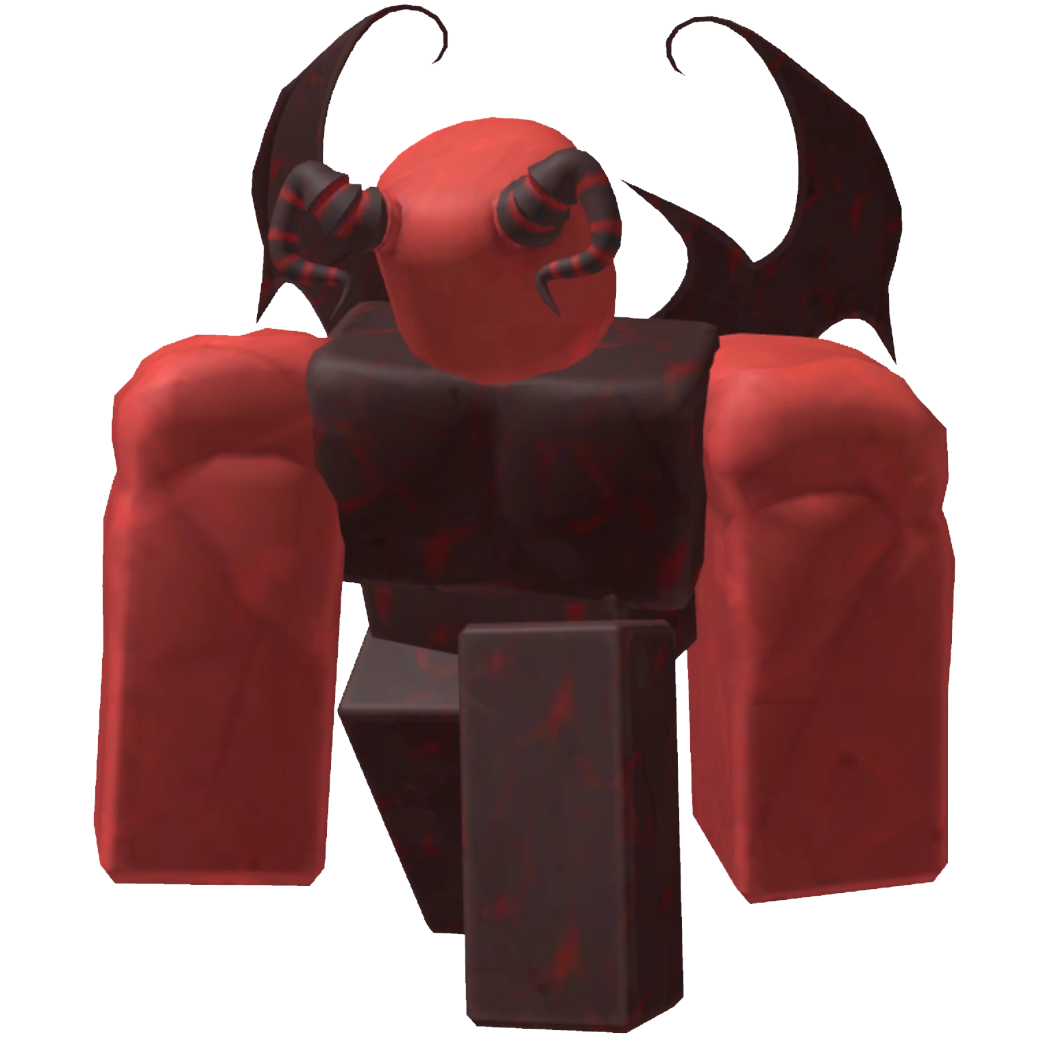 The Demon was a large humanoid with a waist in its rig. It had a red skin tone and a dark red torso, waist, legs and a pair of wings made of magma. It had muscular arms and reddish-black horns with red stripes on its head.