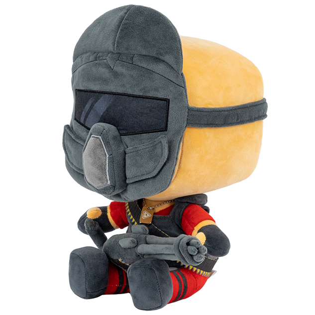 The mask and minigun of the Minigunner Plush is detachable. It is made out of plush fabric and Polypropylene cotton, it is 8.6 inches (21.844 cm) tall and 8.2 inches (20.828 cm) wide. A tree is planted for every order of the Minigunner Plush.