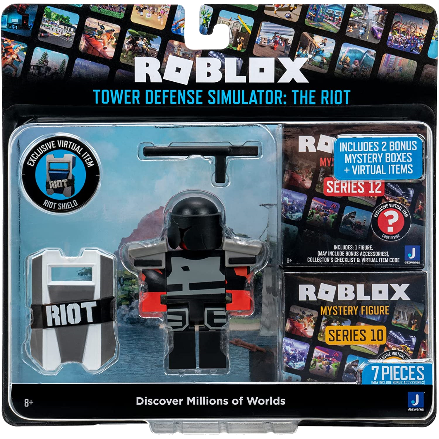 The Roblox Core Pack - The Riot is an official Roblox toy that was released in July of 2022. The toy offers The Riot, an enemy that is not actually in the game. It has red skin, black helmet, grey shoulder-pads, vest and knee-pads. It also wields a riot shield and a police baton. When you buy the toy, one redeemable code is given, which allows you to get the Riot Shield accessory on Roblox. You can also buy the Roblox Core Pack - The Riot with two mystery figures, one from Series 12 of the Roblox Toy line and the second from Celebrity Series 10. The toy is recommended for ages 6+ and is not suitable for children under 3 years old.