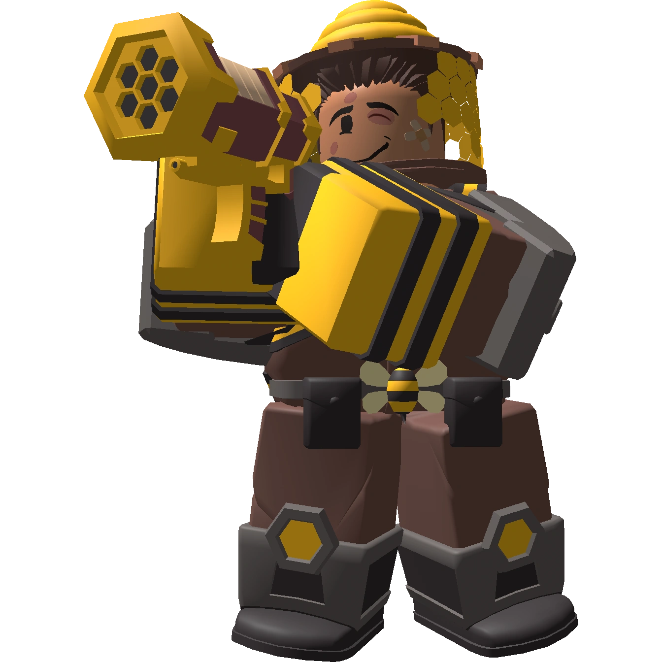 - The bees that the Swarmer fires at the enemies are the Bees accessory from the Roblox catalog.