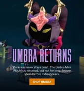 - The shadow rises again. With piercing yellow eyes and bow at the ready, this Umbra Mini Plush is the ultimate addition to your Tower Defense collection. This plush does not include an in-game reward.