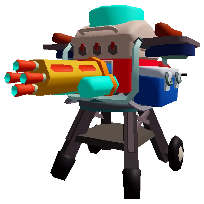 Has a mounted minigun and two rocket launchers on the sentry to attack enemies. |